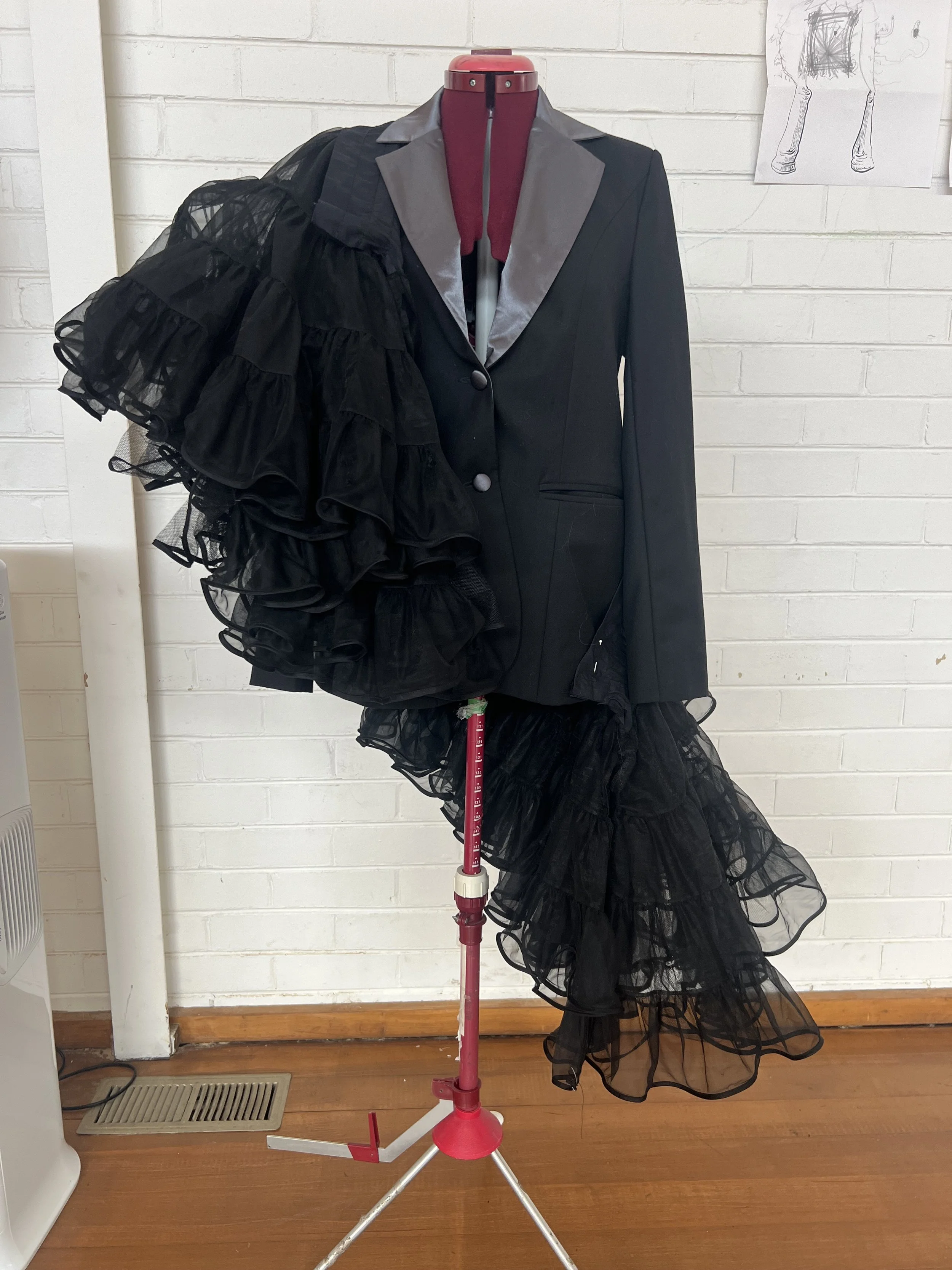 Developing my own up-cycled tailored piece to wear to the exhibition opening.